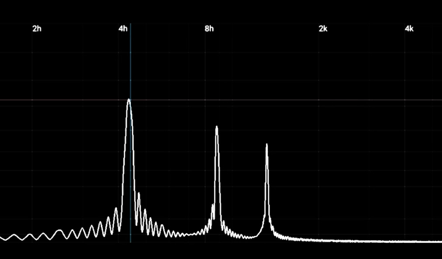 3ème temps de séquence : analyse et interprétation du phénomène observé : de la visualisation continue de la courbe représentant le son, on passe à une vision “discrète”, c’est à dire que les étudiants constatent que la courbe est “découpée” en une multitude de points, les coordonnées en abscisse étant uniformément réparties.
