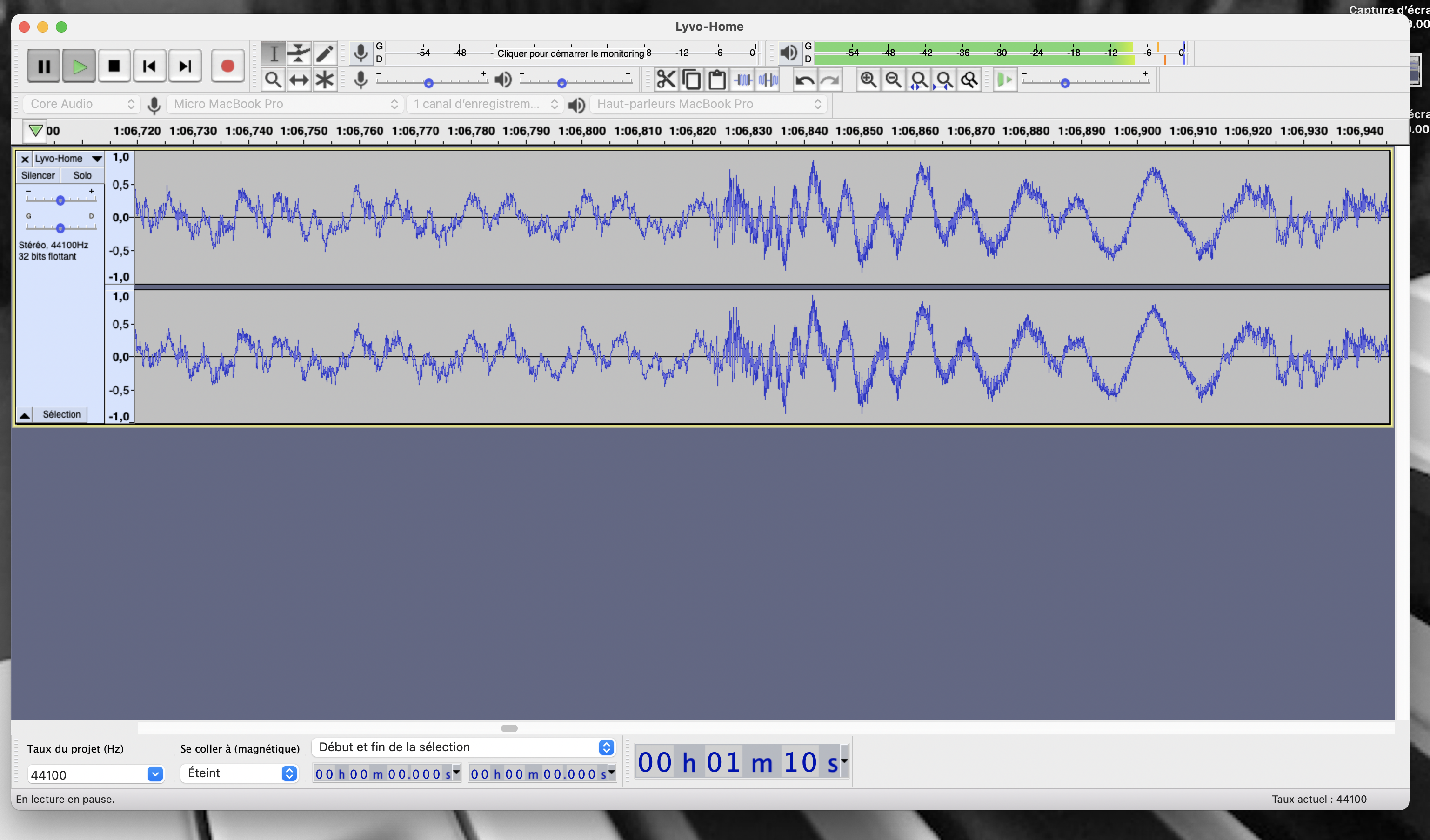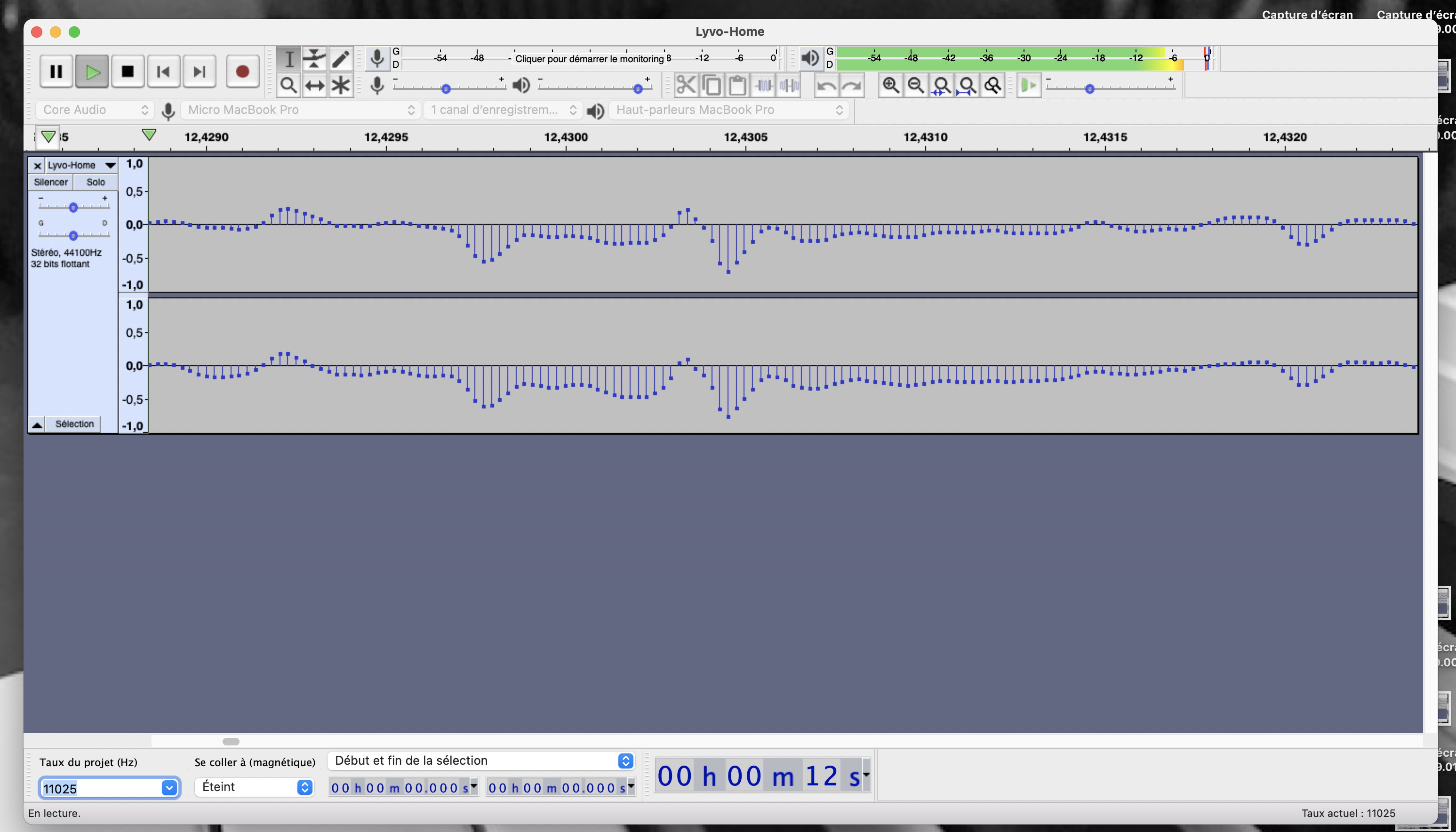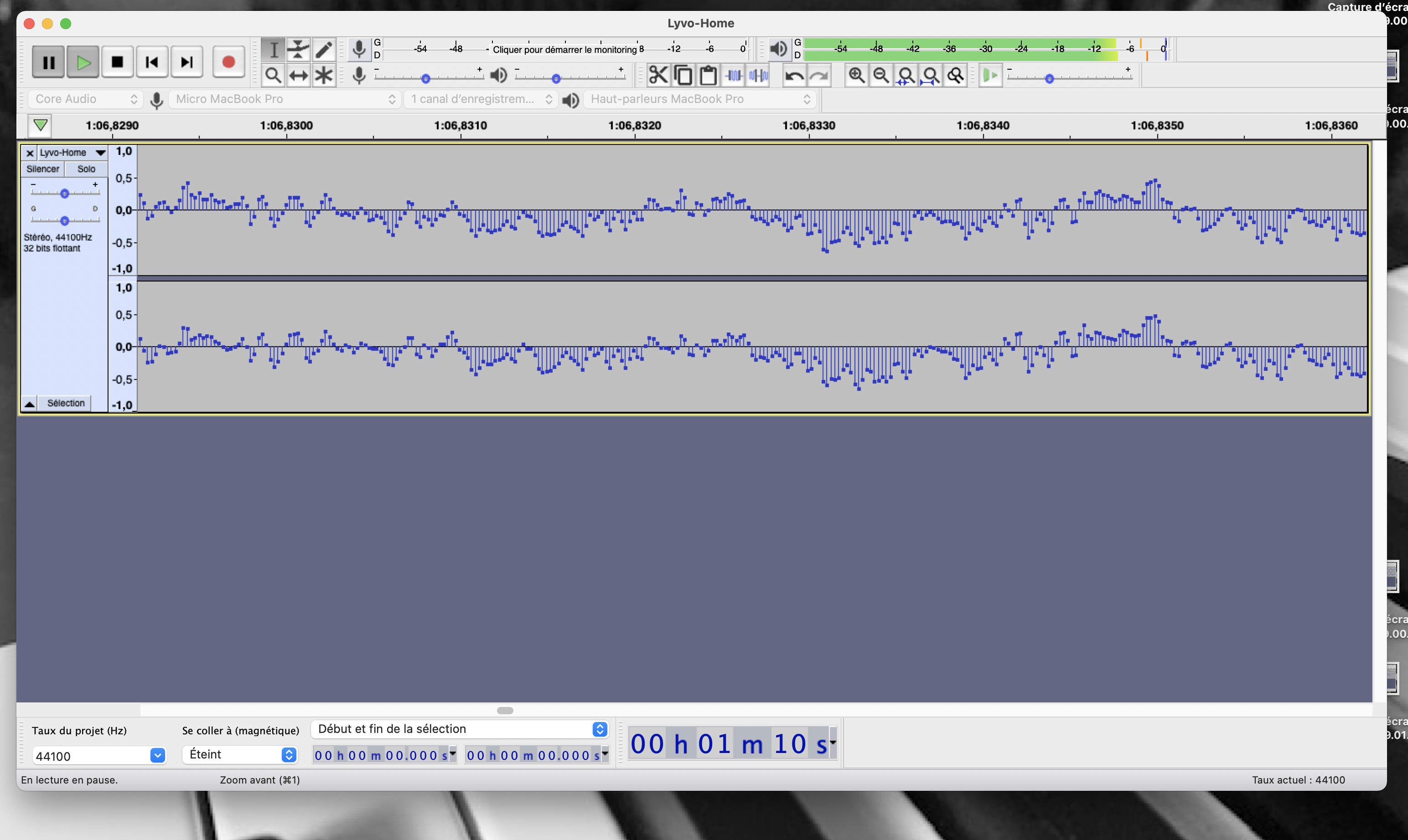 1ère temps de séquence : écoute, manipulation du logiciel Audacity, reprise des fichiers déjà créés (5mn).