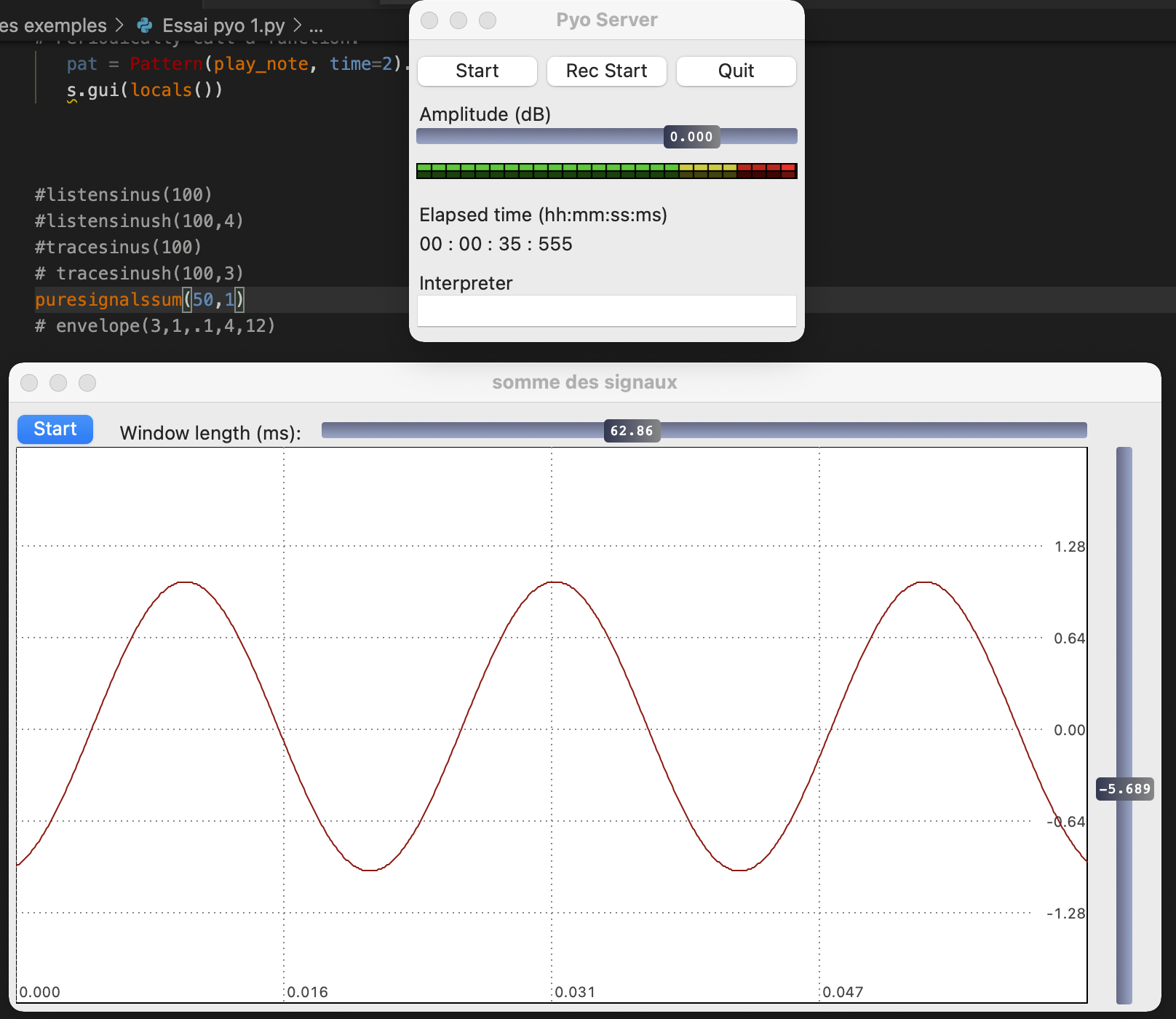 {Activité 9 : via le module graphique de Pyo, les élèves ont la possibilité d’enregistrer une séquence audio qu’ils ont composée à partir de python. Ils peuvent moduler la vitesse d’exécution de la séquence… mais aussi la tonalité!}